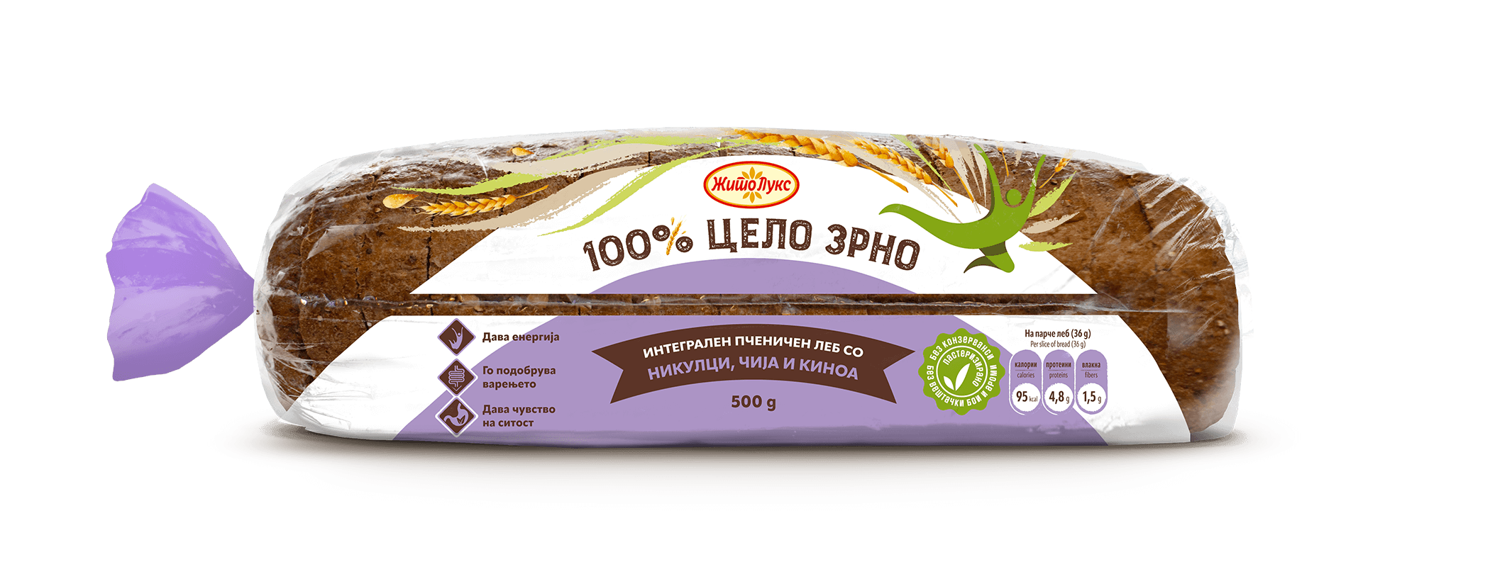 Овој леб е идеална комбинација од интегрално пченично брашно со додаток на семиња од сончоглед, тиква и пченични никулци. Внимателно избраните состојки и додадените семиња претставуваат природен извор на витамин Е, Омега-3 масни киселини, протеини, витамини и минерали кои даваат енергија и чувство на ситост. Ваквиот состав го прави овој леб совршен дел од здравата и избалансирана исхрана и идеален сојузник во одржувањето на нормална телесна тежина.